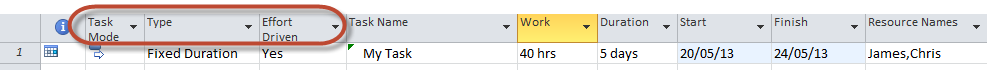 - “Fixed Work”, “Fixed Units” or “Fixed Duration”.